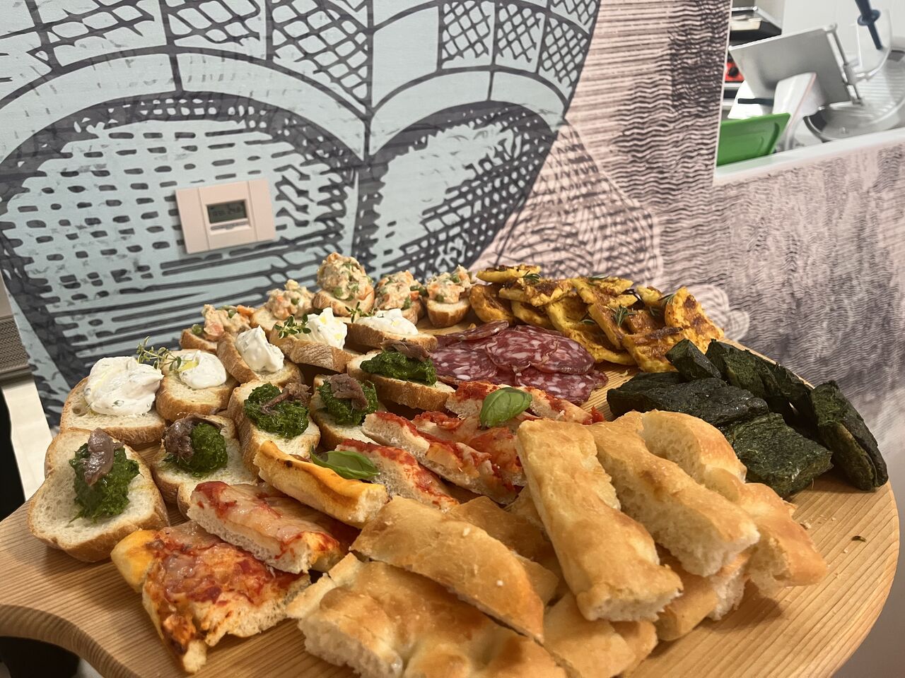 L’ambiente si sviluppa in due spazi distinti: una sala principale calda e accogliente, e una saletta al piano inferiore, ideale per chi cerca un’atmosfera più riservata e tranquilla. All’esterno, il dehor sulla via con vista sulla piazza invita a momenti di relax, perfetti per un aperitivo o una cena all’aperto.
